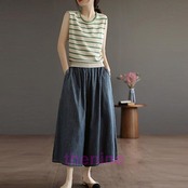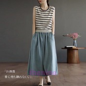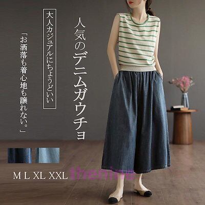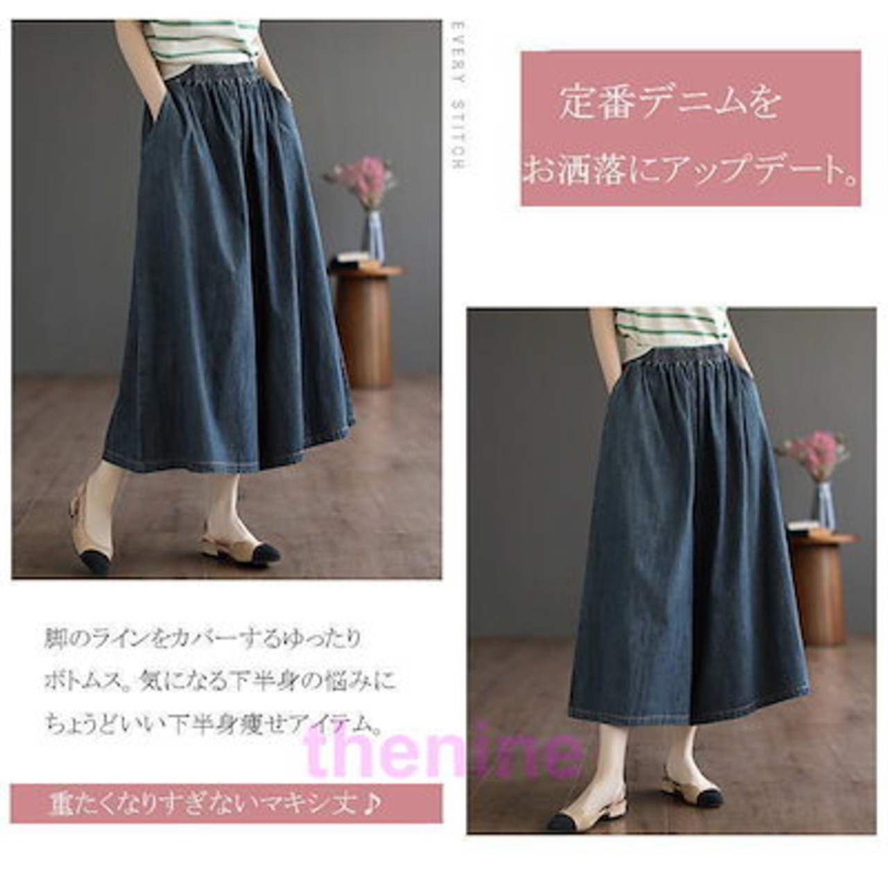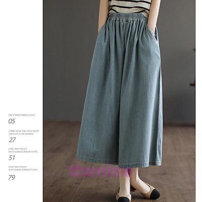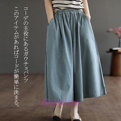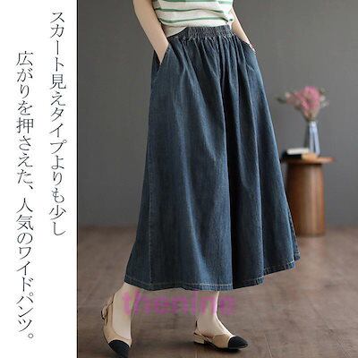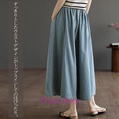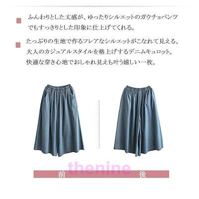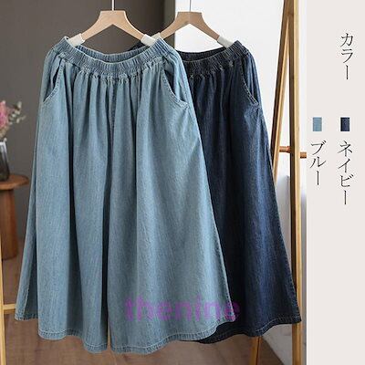 新品更新 デニムパンツ デニム パンツ レディース ワイドパンツ ガウチョパンツ 大きいサイズ ウエストゴム フレア フレアパンツ きれいめ ポケット 春夏 7分丈