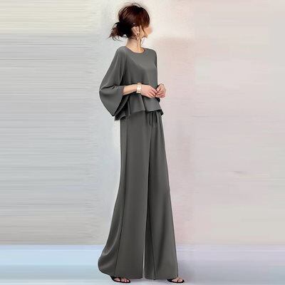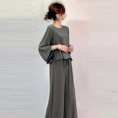 25新作 シンプル スウエット セットアップ レディース レディースファッション ブラウス トップス ワイドパンツ 二点セット 大きめサイズ