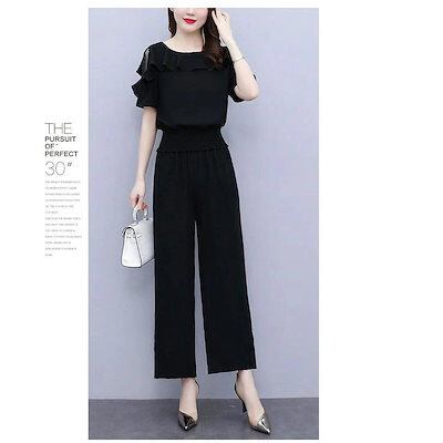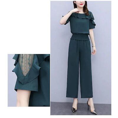 セットアップ レディース 40代 半袖 通勤 レース ワイドパンツ カジュアル オシャレ 韓国風 着痩せ 大きいサイズ