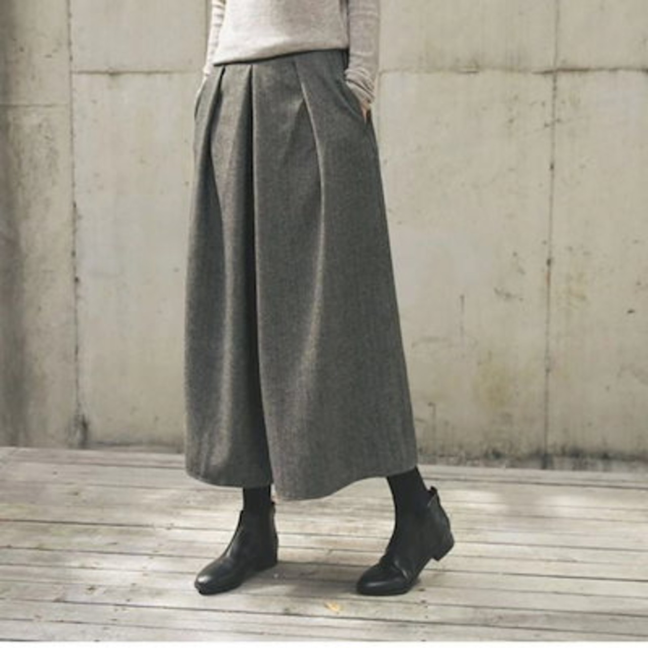 新品 春服 春秋冬 フレアパンツ スカーチョ ワイドパンツ レディース キュロットパンツ タック ガウチョパンツ スカンツ ウール 防寒 保温 イージーパンツ 大きいサイズ 韓ファッション
