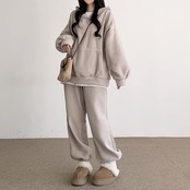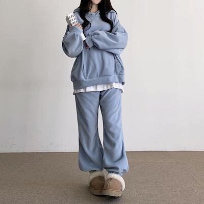 2枚購入で 2oo円FF!24新作 シンプル スウエット 裏起毛 厚手 セットアップ レディース レディースファッション パーカー トップス ワイドパンツ 二点セット 大きめサイズ