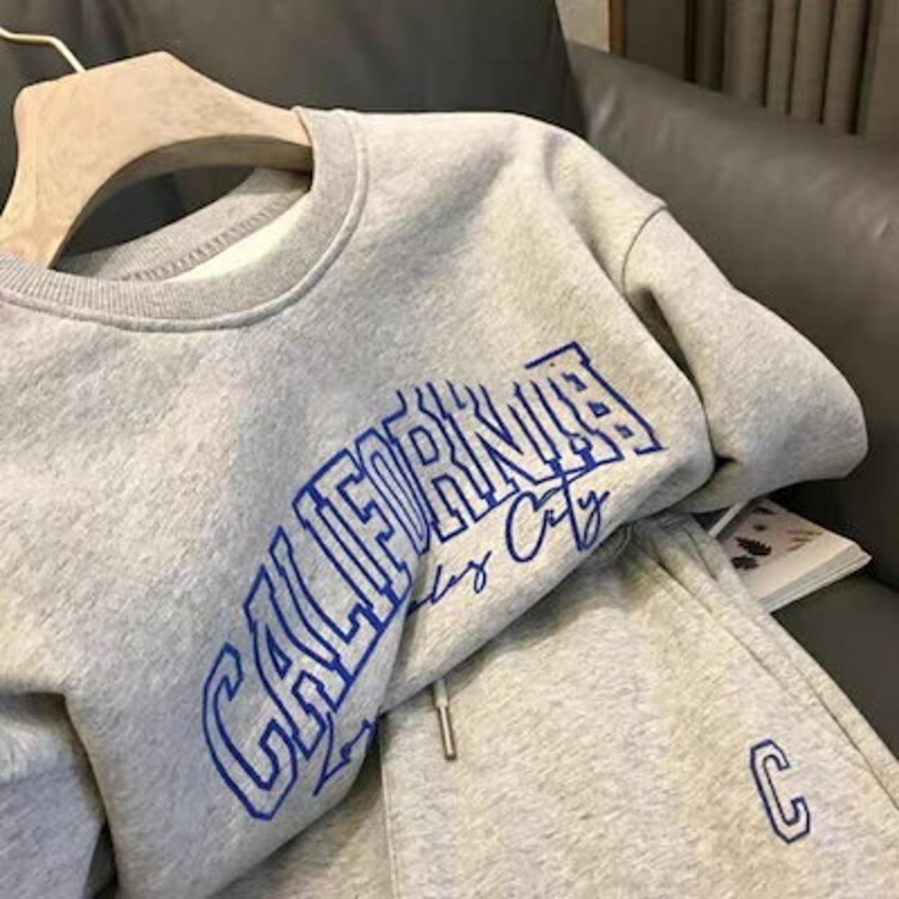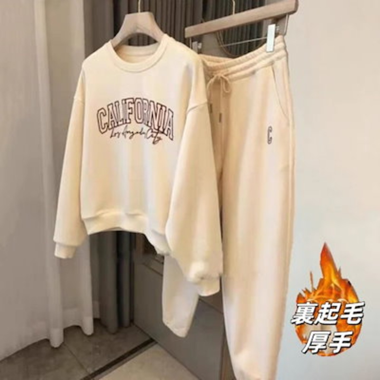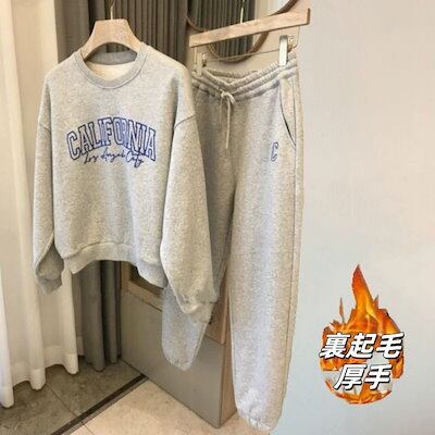 2枚購入で 2oo円FF!24新作 シンプル スウエット 裏起毛 セットアップ レディース レディースファッション 丸ネック Tシャツ トップス ワイドパンツ 二点セット 大きめサイズ
