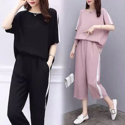 24 新作 おしゃれ 流行り 気質 二点セット 大きいサイズ ゆったり カジュアル 半袖 Tシャツ ワイドパンツ セットレディースセットアップ涼しく楽ちんセットアップ ウェア 日焼け止め