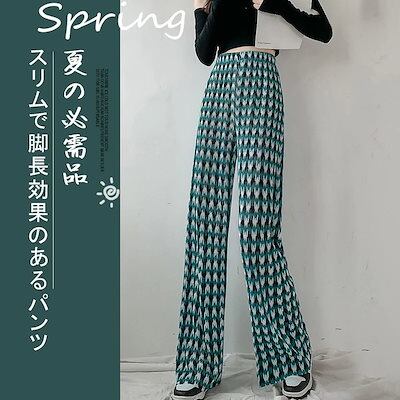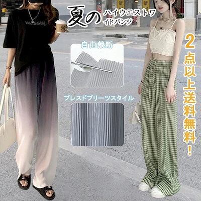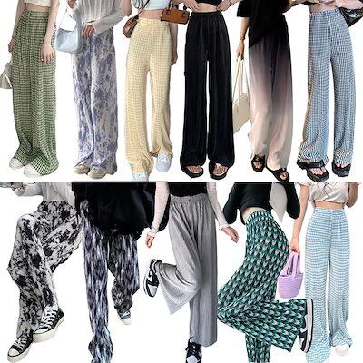 ひんやりボトムス ワイドパンツ 入荷 レディース プリーツ 大きいサイズ 低身長 柄 スラックスパンツ ワンマイルウェア カットフリー ウエストゴム タイダイ 黒 チェック柄 千鳥 ポケット付き