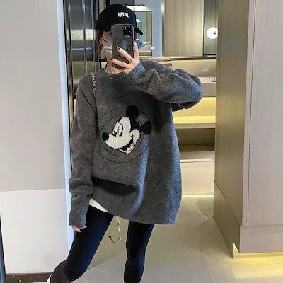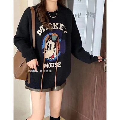 ディズニー パーカー!2024秋新入荷韓国ファッション/秋服/冬服 パーカー/レディースTシャツ/ロングTシャツ薄手可?原宿BF風男女兼用