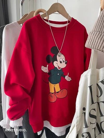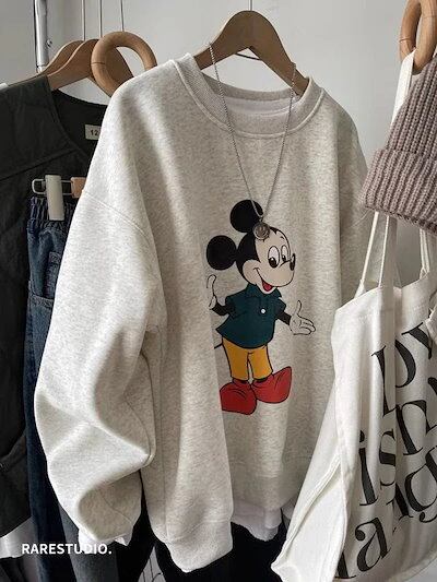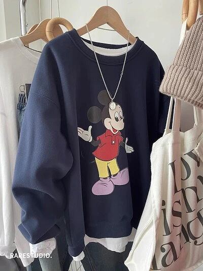 2025新品入荷激安な姉妹ミッキーマウスプリントスウェットシャツレディースベルベットルーズカジュアルトップフード付きスウェットシャツ