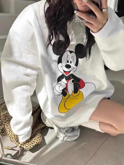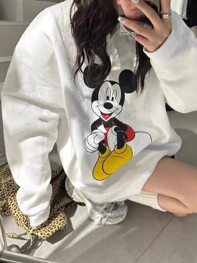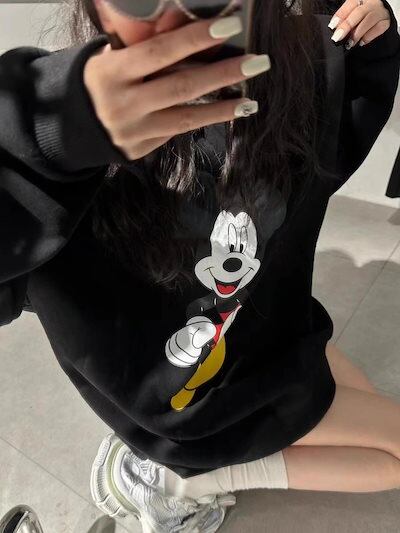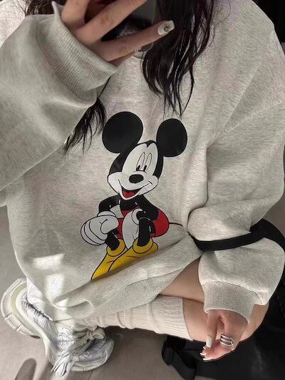 2025新品入荷激安ナショナルレディーススウェットシャツ2025ミッキーマウスプリントラウンドネックプラスベルベット厚みのあるカジュアルトップフード付きスウェットシャツ