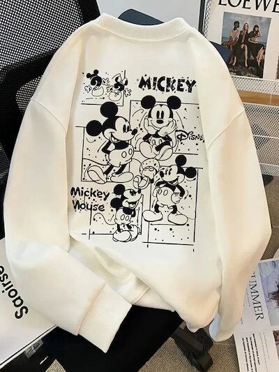 2025新品入荷激安フリースかわいい齢を軽減するミッキープリントのフード付きトレーナー女性用ファッショナブルで超格好良いトップスフード付きスウェットシャツ