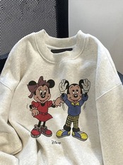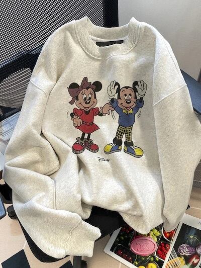 2025新品入荷激安ファッショナブルで齢を軽減する女性用ミッキープリントフード付きスウェットシャツスリムベルベットボトムシャツフード付きスウェットシャツ