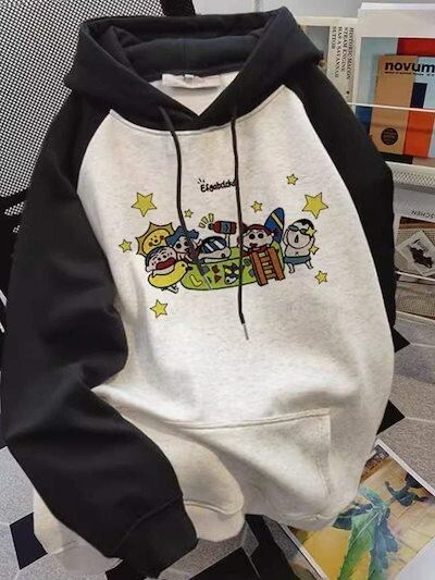 2025新品入荷激安コットンクレヨンしんちゃん ラグランスリーブ 男女兼用ベルベット厚手ジャケット フード付きスウェットシャツ