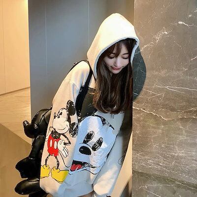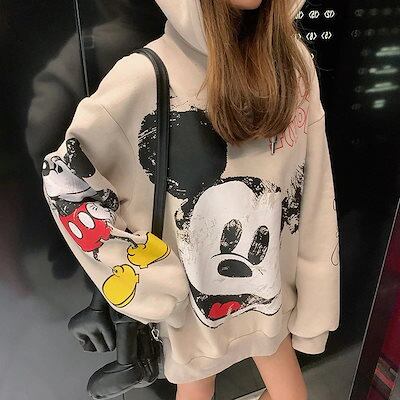 2025新品入荷激安山東省青島jimoミッキースウェットシャツレディースミッドレングスお尻カバープラスベルベット厚みのある超厚手のフード付きスウェットシャツ