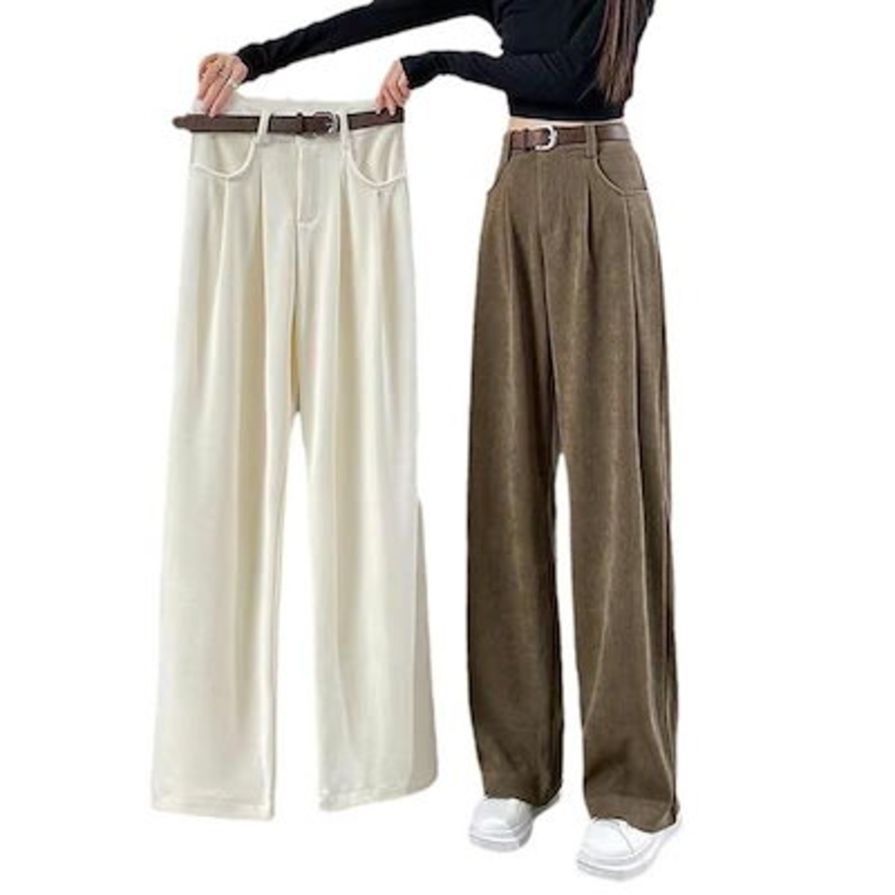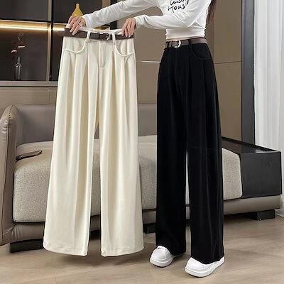 かっこいい!スラックスパンツパンツ ワイドパンツ カジュアルパンツ ワインレッド 垂下感 ファッション やせて見える コーデュロイ ワイドパンツ レディース