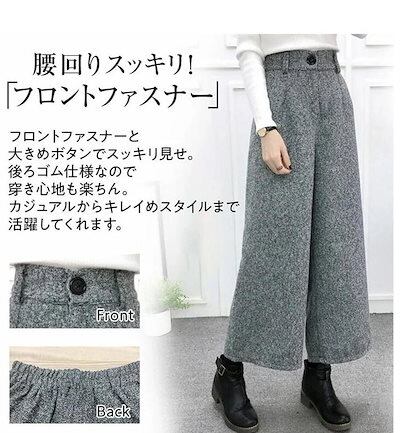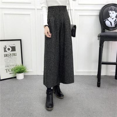 パンツ オフィス ウエストゴム ガウチョ 体型カバー ハイウエスト 【3タイプ選べる】冬対策 ワイドパンツ 通勤 ボトムス ズボン ウール混 ワイド レディース パンツ OL
