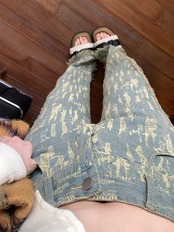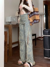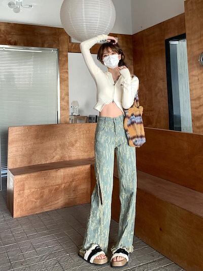 デニムボトムス ワイドパンツ 2023 夏 新作 ファッション ダメージデニムパンツ レディース