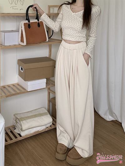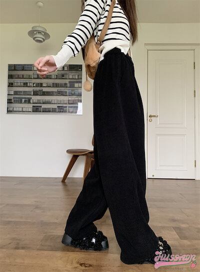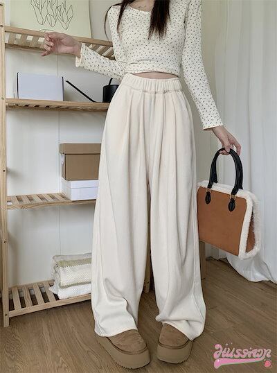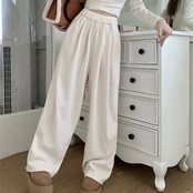2024 春夏パンツ ロング丈 モップパンツ ワイド ストレート ウエストゴム ハイウエスト 脚長効果 美脚効果 細見え 秋冬 白 茶色 黒 カジュアル シンプル 韓国ファッション レディース お出か
