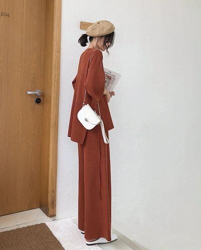 セットアップ 韓国ファッション 2024新作 運動セット涼しく楽ちんセットファッション大きいサイズレディースニット二点セットアップ上下ワイドパンツロング長袖トップス秋服