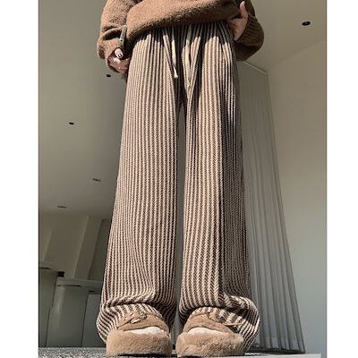 韓国ファッションコーデュロイパンツツイードパンツレディース秋冬新作 カジュアルレトロストレートパンツ秋冬のワイドパンツ厚手 防寒 ハイウエスト