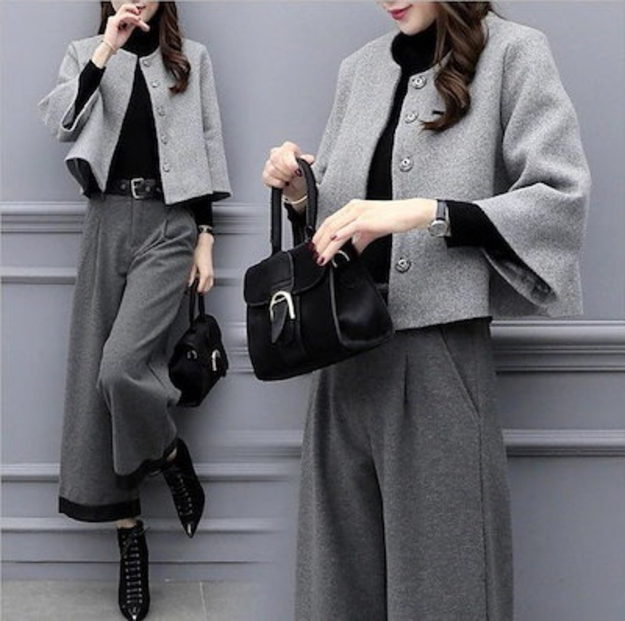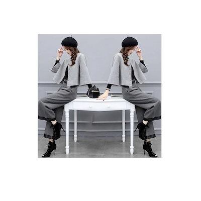 韓国のファッションスーツセットアップ ワイドパンツ レディース 秋冬 パンツ ウール混 ガウチョパン