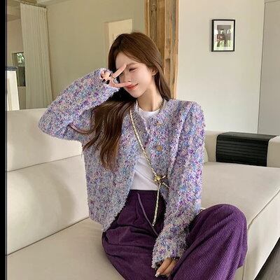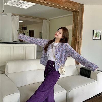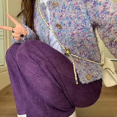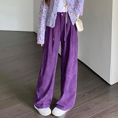 パンツ ロング丈 ワイド ストレート パープル 紫 ハイウエスト 脚長効果 美脚効果 細見え 秋冬 カジュアル 韓国ファッション レディース お出かけ