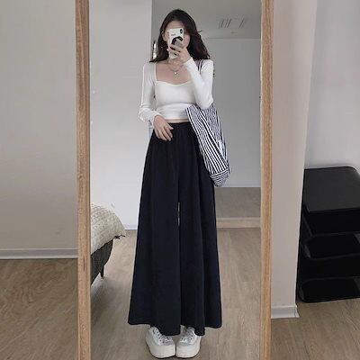 秋冬のワイドパンツ 韓国ファッション 裏起毛パンツ ゆったり ワイドパンツ スウェットパンツ ワイドパンツレディース秋冬 厚手 防寒 ハイウエスト パンツ クリスマス