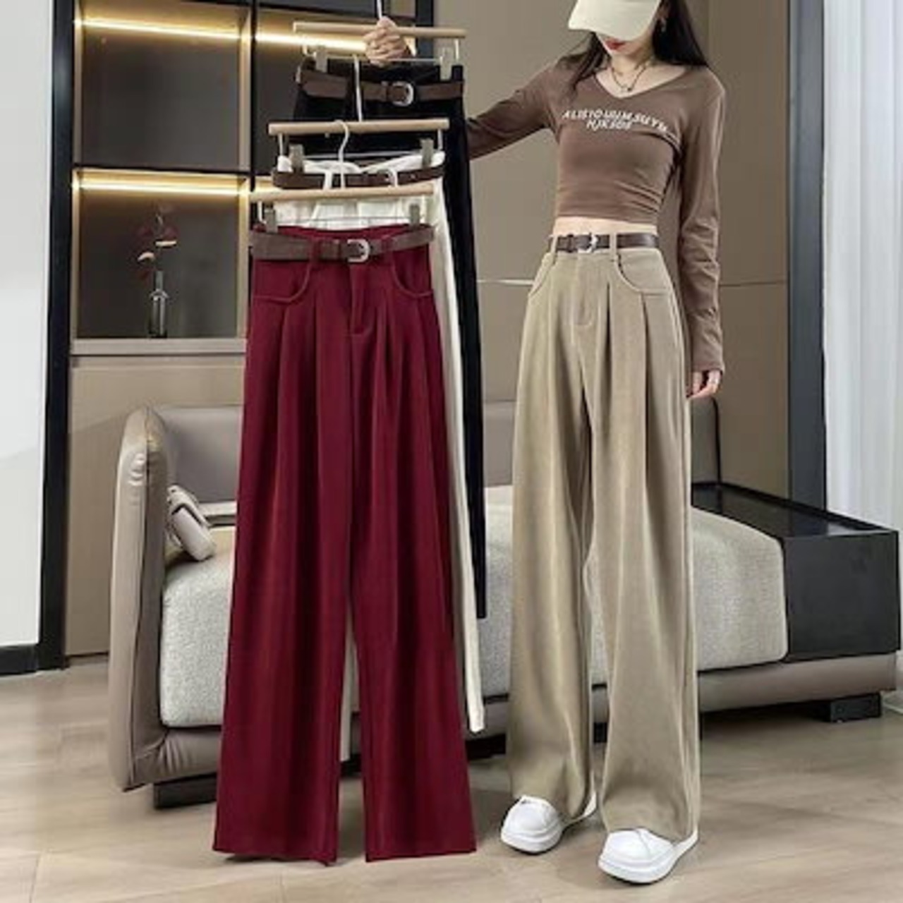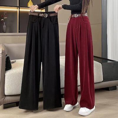 かっこいい!スラックスパンツパンツ ワイドパンツ カジュアルパンツ ワインレッド 垂下感 ファッション やせて見える コーデュロイ ワイドパンツ レディース