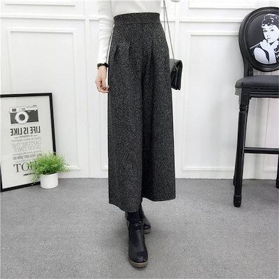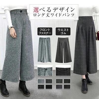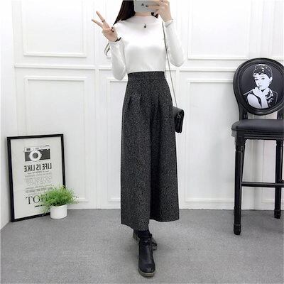 パンツ オフィス ウエストゴム ガウチョ 体型カバー ハイウエスト 【3タイプ選べる】冬対策 ワイドパンツ 通勤 ボトムス ズボン ウール混 ワイド レディース パンツ OL