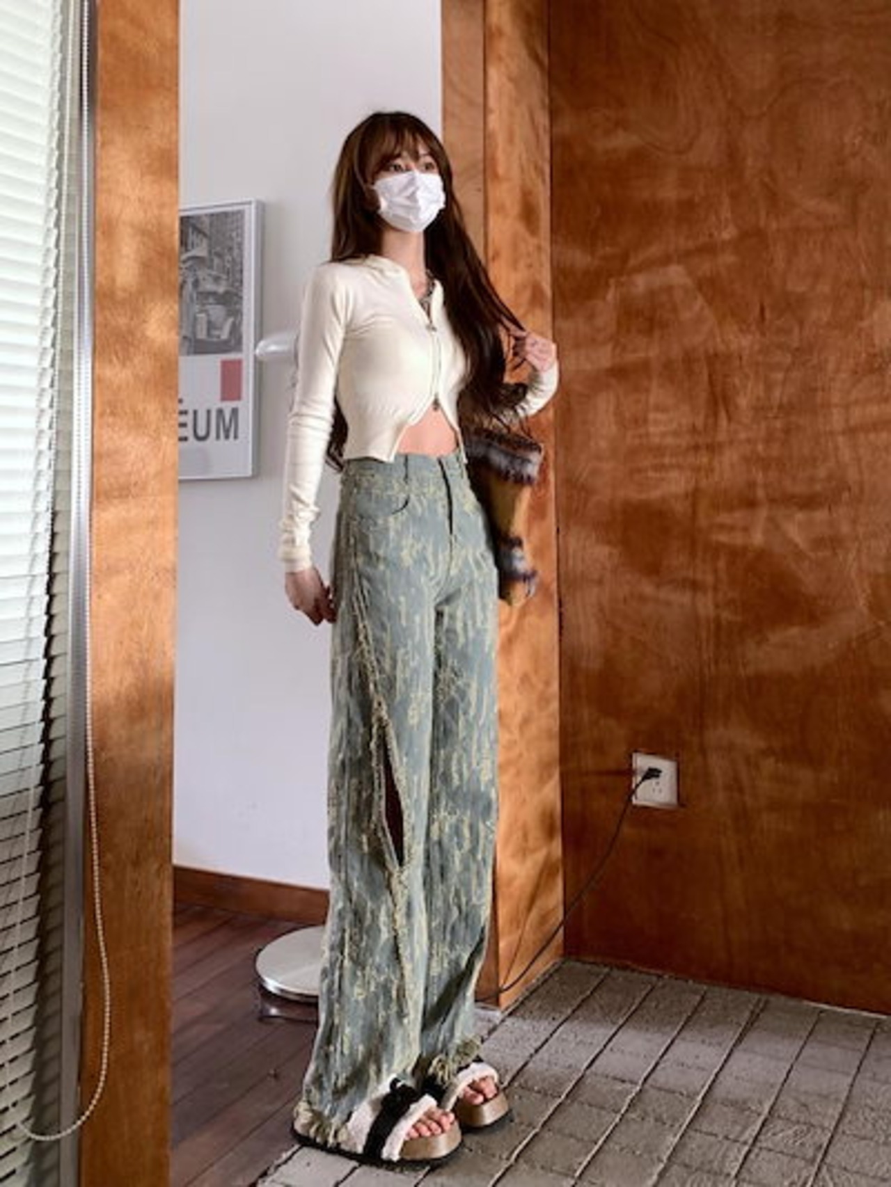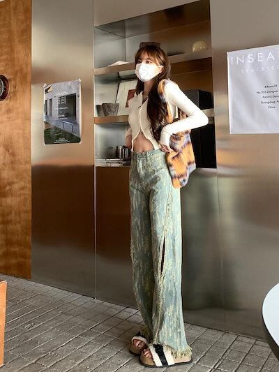 デニムボトムス ワイドパンツ 2023 夏 新作 ファッション ダメージデニムパンツ レディース