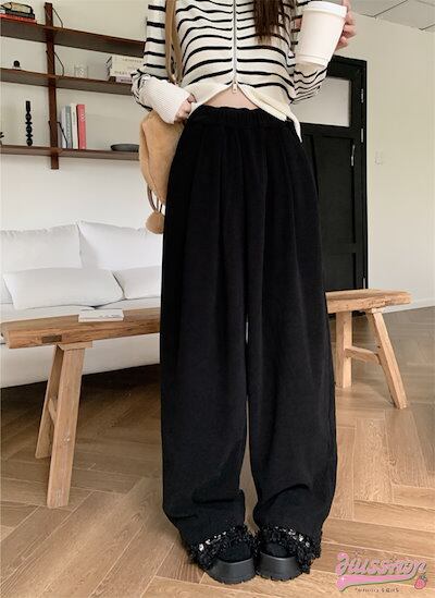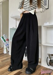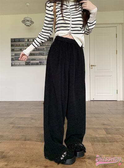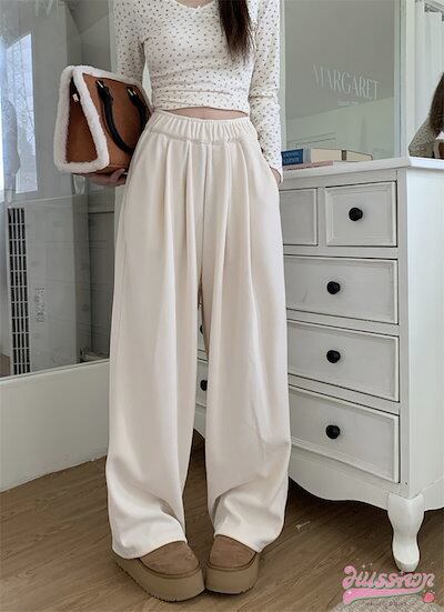 2024 春夏パンツ ロング丈 モップパンツ ワイド ストレート ウエストゴム ハイウエスト 脚長効果 美脚効果 細見え 秋冬 白 茶色 黒 カジュアル シンプル 韓国ファッション レディース お出か