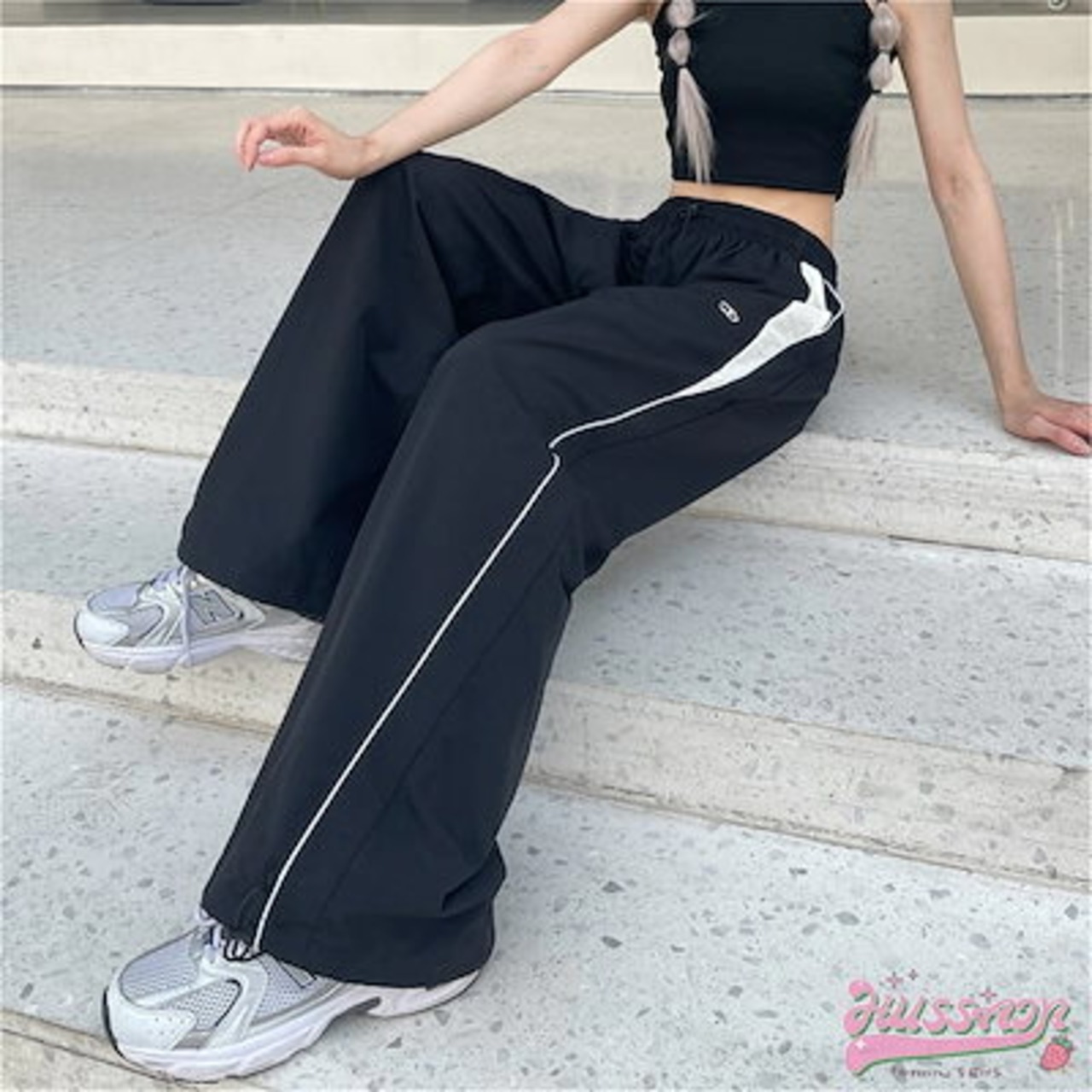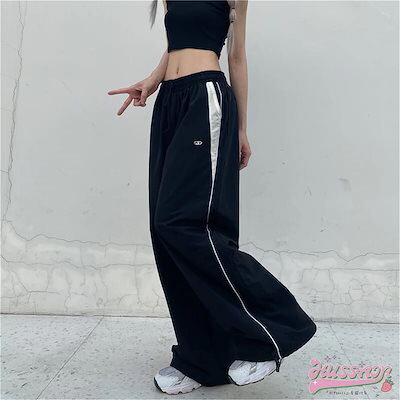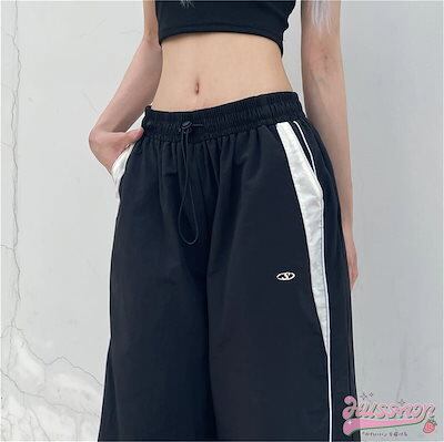 2024 春夏 ウエストゴム リラックス パンツ 脚長 ゆったり メンズライク カジュアルパンツ スポーツパンツ レッグロングパンツ ボトム シンプル ルーズ カジュアル 韓国ファッション トラック