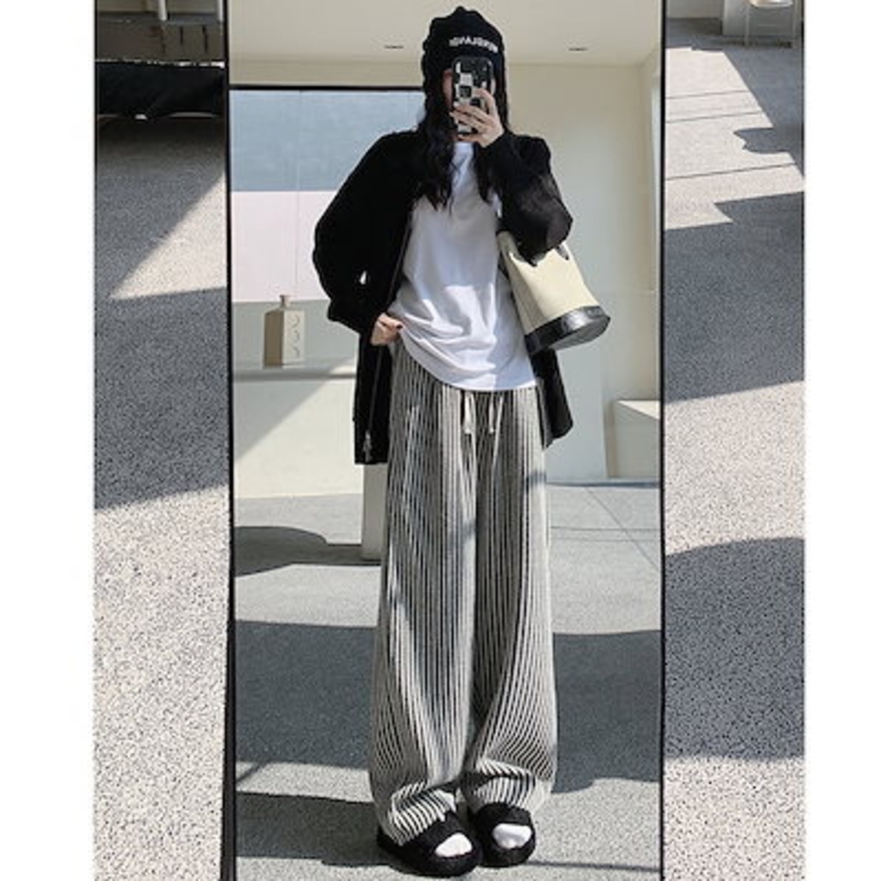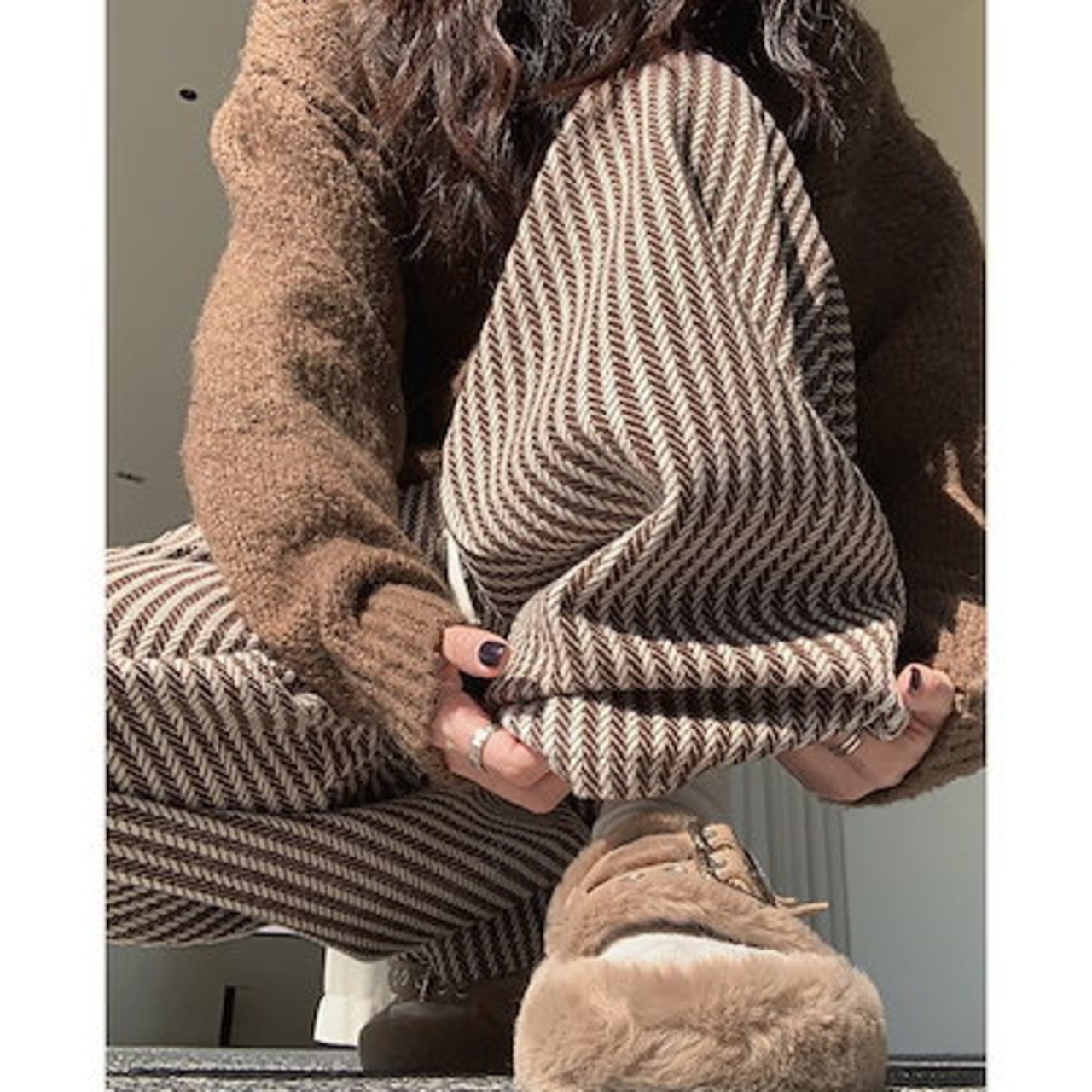 韓国ファッションコーデュロイパンツツイードパンツレディース秋冬新作 カジュアルレトロストレートパンツ秋冬のワイドパンツ厚手 防寒 ハイウエスト