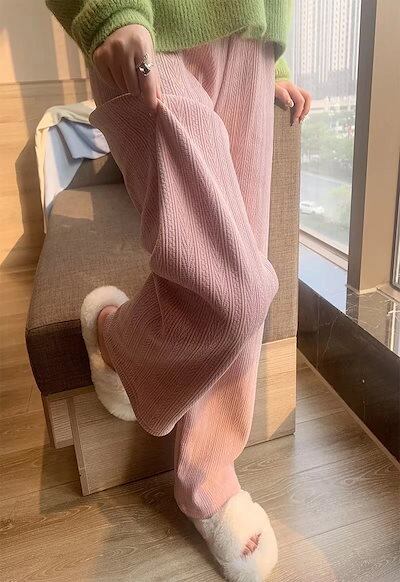 2025秋冬の新品 韓国ファッション ワイドパンツ レディース ロングパンツ ズボン パンツ 裏起毛パンツ