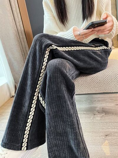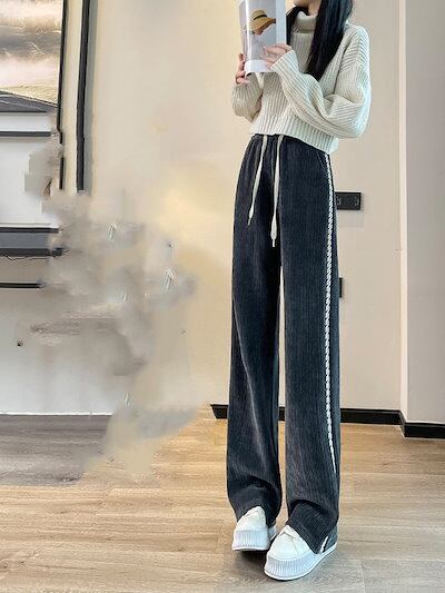 秋冬の新作 レディース ハイウエスト 裏起毛 厚手 コーデュロイ ワイドパンツ ワイドパンツ 高級感 ズボン
