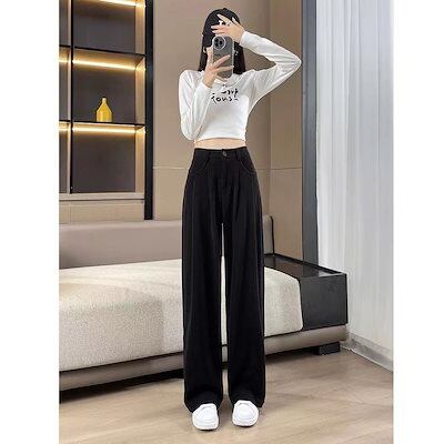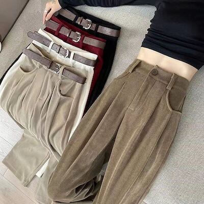 コーデュロイワイドパンツを厚めにしたレディースカジュアル新型秋冬ストレートパンツハイウエストでゆったりと着やせ