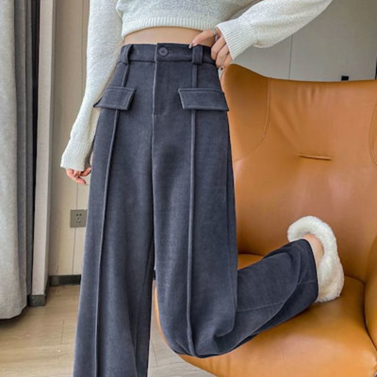 秋冬のワイドパンツ 韓国ファッション 裏起毛パンツ カジュアル ワイドパンツ スウェットパンツ ワイドパンツレディース秋冬 厚手 防寒 ハイウエスト パンツ クリスマス