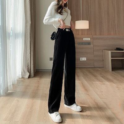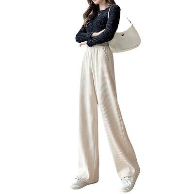 かっこいい!スラックスパンツパンツ ワイドパンツ カジュアルパンツ シェリルワイドパンツ ズボン ハイウエスト 垂下感 ストレートパンツ 黒のズボン 百掛け ワイドパンツ レディース