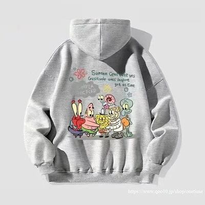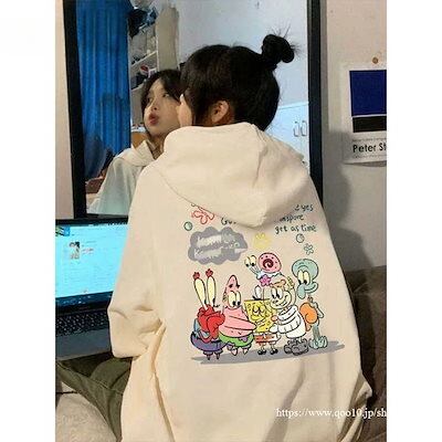 秋 パーカー レディース トレーナー スポーツウェア 大きいサイズ 安い スポンジボブ 可愛いトップス 男兼用 ペアルックパーカー 韓国