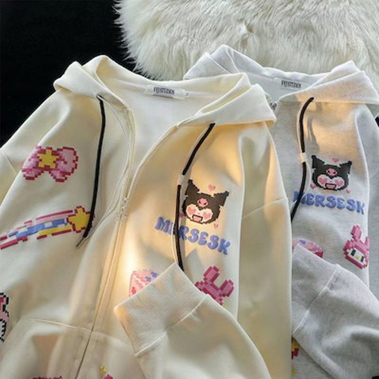 【shanghaihengq】パーカー レディース ジップアップ スウェット フード付き ゆったり 薄手裏起毛 ジップアップパーカー 可愛い クロミちゃん マイメロディ トップス 秋冬 カジュアル ア