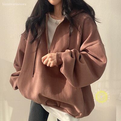 流行のスタイル パーカー ハーフジップパーカー レディース トップス トレーナー スウェット かわいい おしゃれ 可愛い 長袖 薄手 普段着 通勤 薄手 裏起毛 キレイめ