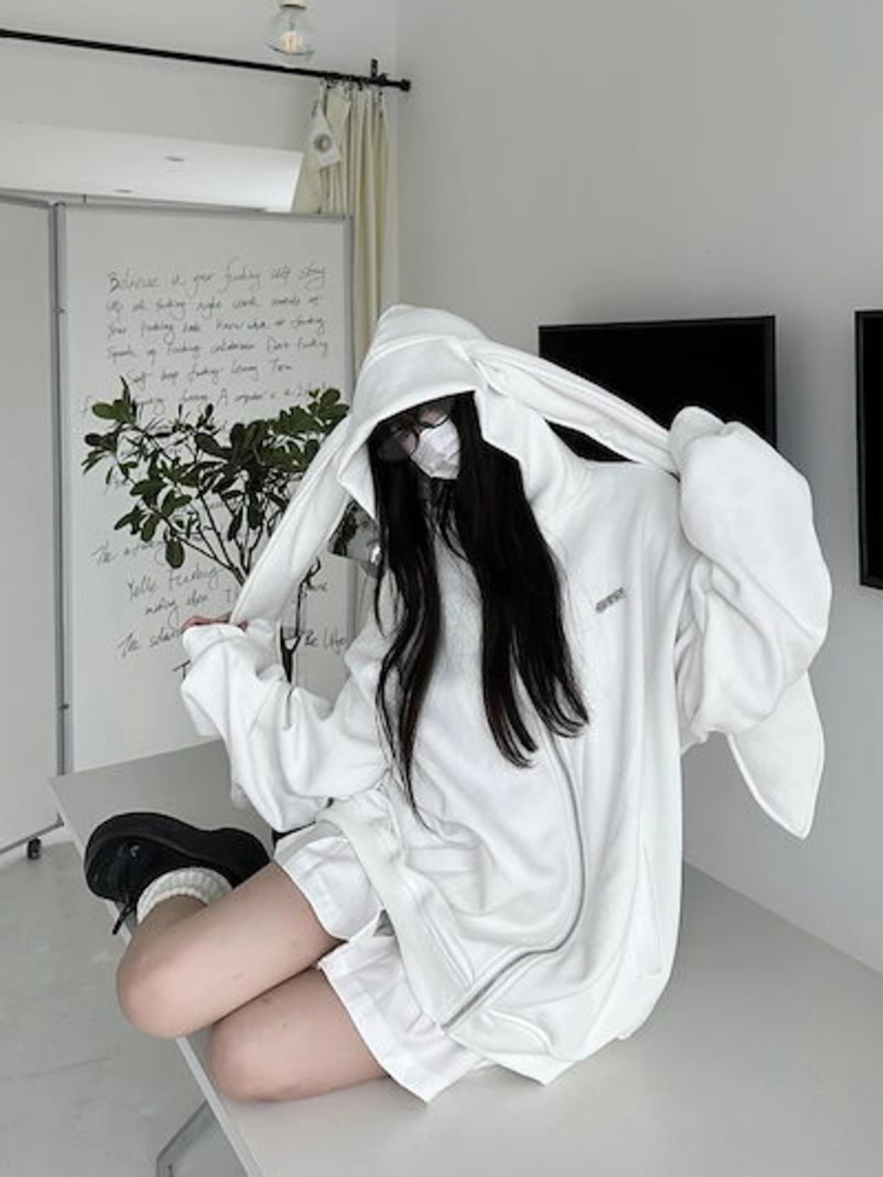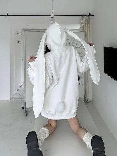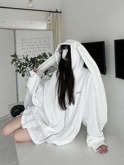 秋冬の新作 パーカー 秋と冬のウサギの耳かわいいフード付きルーズセーターコートカップル女性の新しいスパイスガールズの汎用性の高いトップスレディーストレーナー 韓国ファッション