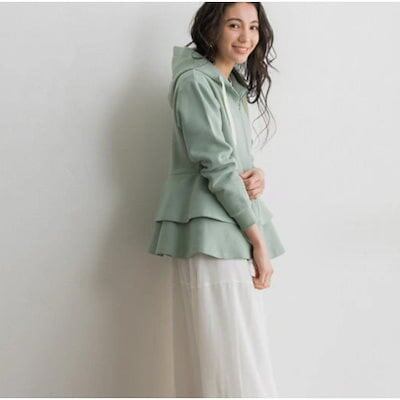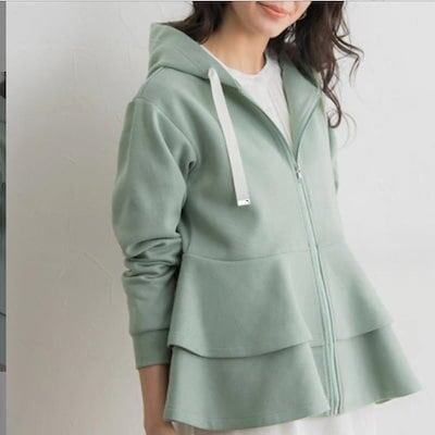 パーカー 裾 フリル レディース トップス グレー 裾フリル 長袖 スウェット風 あったか フード ブルゾン トレーナー アウター おしゃれ 可愛い