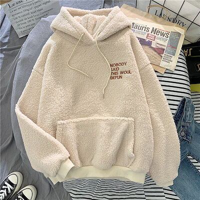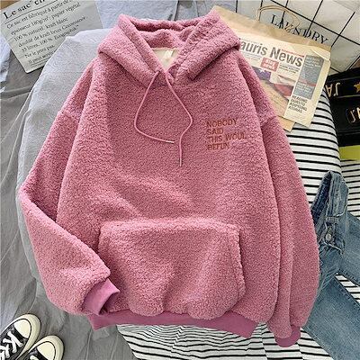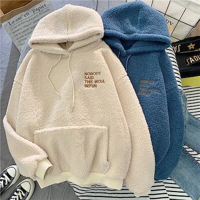 裏起毛ファッション パ一力一 秋冬 裹起毛 パーカー 韓国ファッション ゆったり百掛け ラムズウール フード付き 体型カバー 保温性 トップス 秋アウター 可愛いパーカー レディース