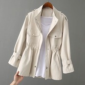 テーラードジャケット 韓国ファッション レディースジャケット 人気アウター 春と秋の風のコート女性のミディアムレングススタイル