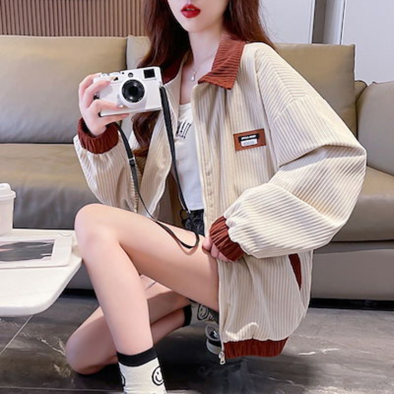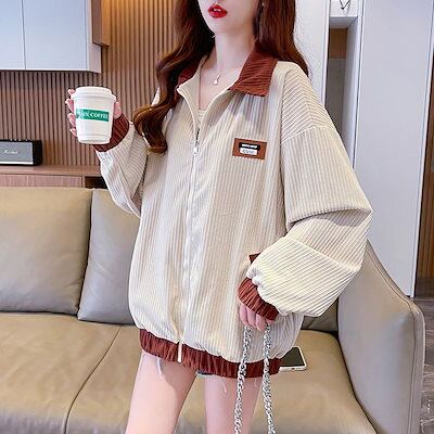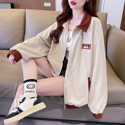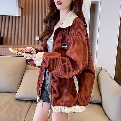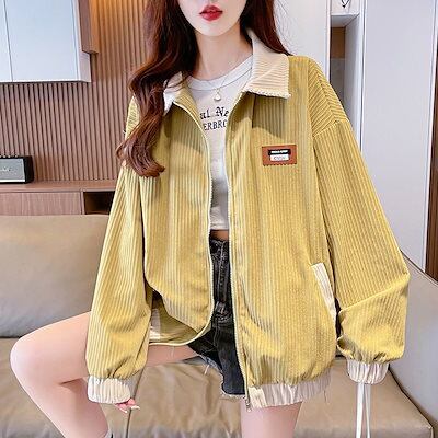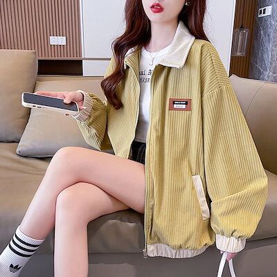 人気アウター ジャケットレディース コーデュロイジャケットの春秋新作 カジュアルなアメリカンレトロベースボールジャケットの韓国版