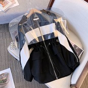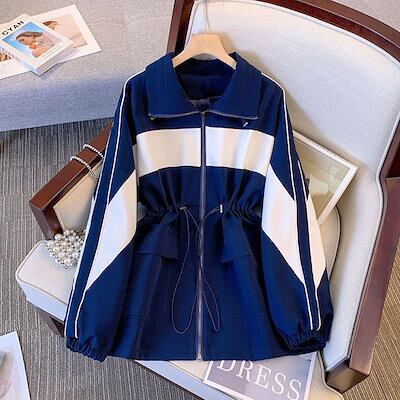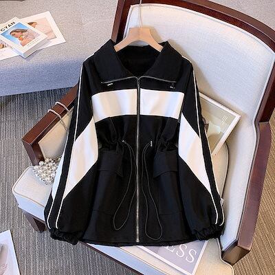 人気アウター ジャケットレディース スプライシング衝突ウエストトレンチコートジャケット女性春と秋の薄いカジュアルワークウェア黒巾着ジャケットトップス