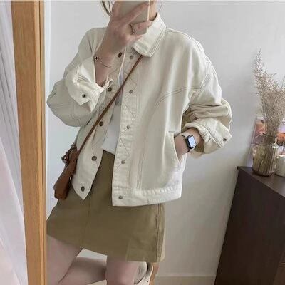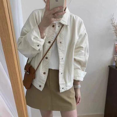 アウター ツイル 百掛け ルーズ デニムジャケット レディース ブライトライン デザイン ショート トップス 秋 韓国