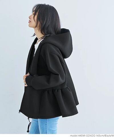 テーラードジャケット 韓国ファッション レディースジャケット 人気アウター 女性のためのかわいいフッフルのフード付きフード付きジャケットの厚くなった短いジャケットブラックアプリコットカラー