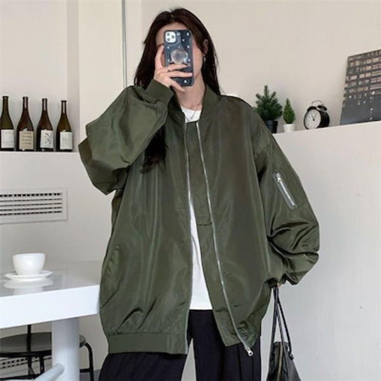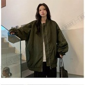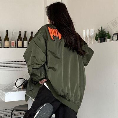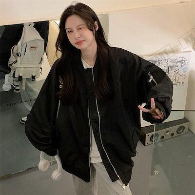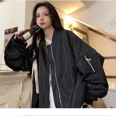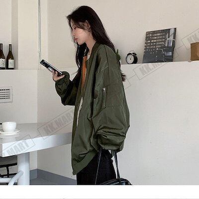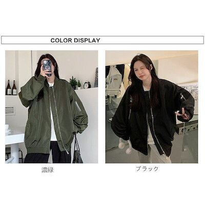 ミリタリージャケット レディース春薄手ナイロン生地黒濃緑フライトジャケットゆったり大きいサイズブルゾンジャンパー