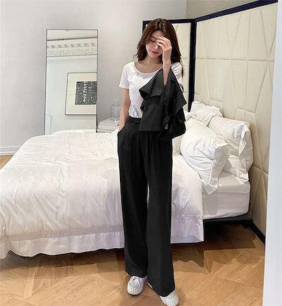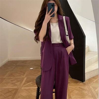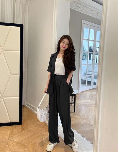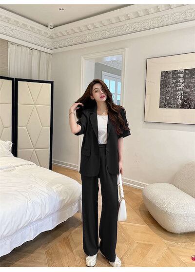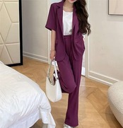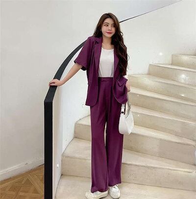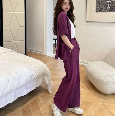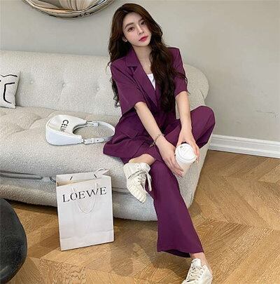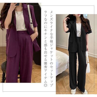 セットアップ レディース カジュアル 夏 半袖 40代 春夏 大きいサイズ 夏 韓国風 おしゃれ 2点セット 半袖 ワイドパンツ ロングパンツ カジュアル ジャケット ロング丈 パンツ トップス ボト