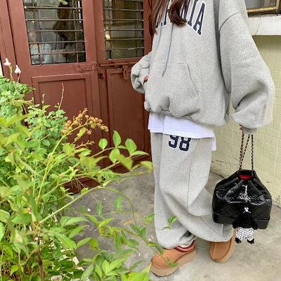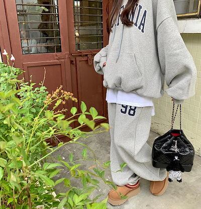 2024 秋冬 2点セット トップス 裹起毛 防寒あったか お出かけ 暖かい 羽織り かわいいショート丈 セットアップ ルーズ ボトムス ストレート系冬 ゆったり サイズワイドシルエット レディース