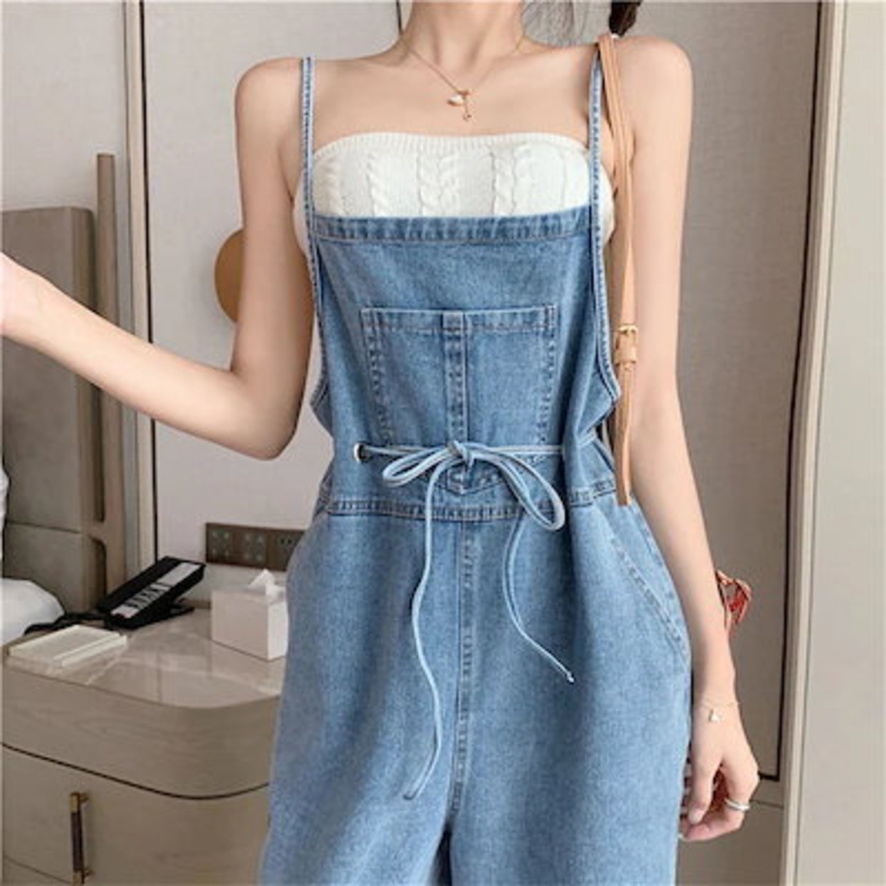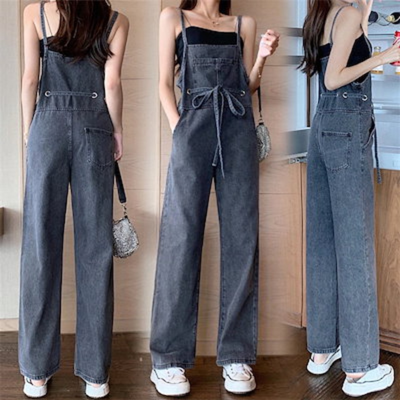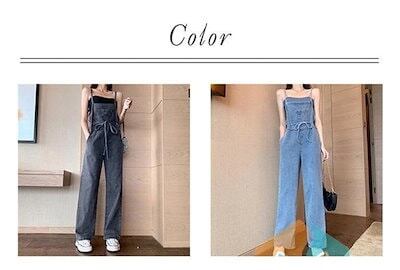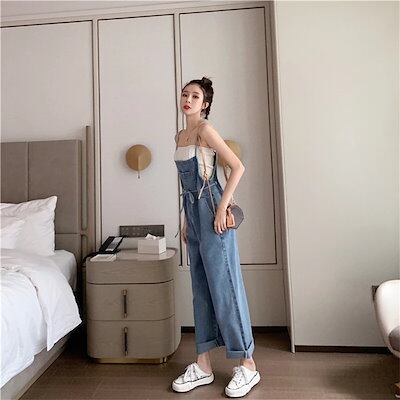 デニムサロペット レディース ワイドパンツ ロング丈 オーバーオール オールインワン 体型カバー 大きいサイズ 春夏